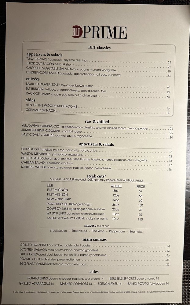 BLT Prime Menu